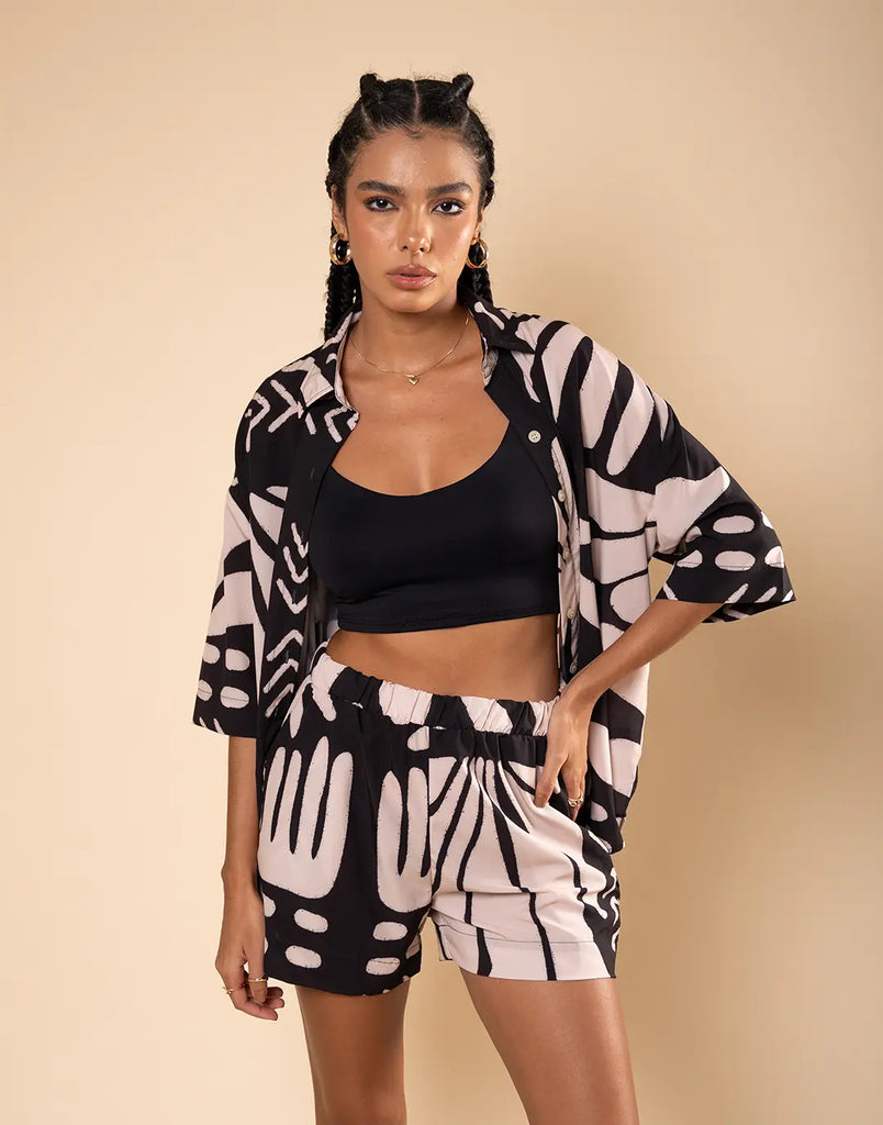 Shorts: Short with a soft elastic waistband and side pockets. Its loose design allows freedom of movement. Wear it as a set or separately.