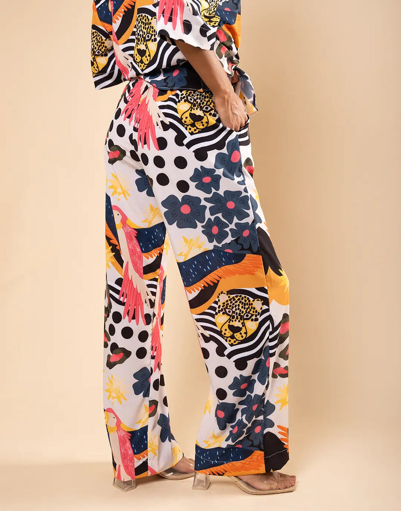 Pants: Long with side pockets and a soft elastic waistband. Its loose design allows freedom of movement. Wear it as a set or separately.